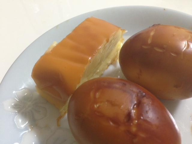 たまごは、茹でてから、わたしは30分くらい醤油漬けにして、よく水分を拭きました!